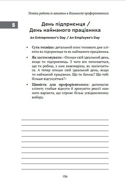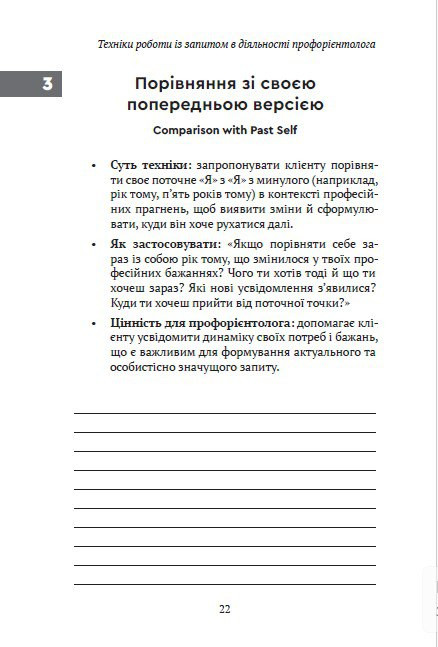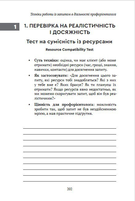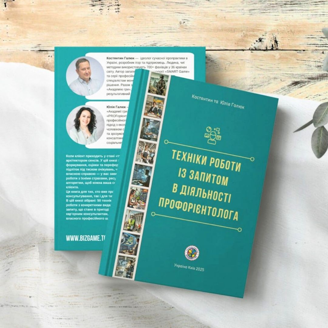 Посібник «Техніки роботи із запитом у діяльності профорієнтолога» об’єднує 200 практичних технік, зібраних і структурованих на основі реальної консультаційної практики.