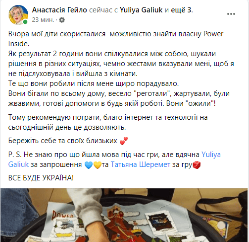 Першу гру Power Inside в рамках проекту, ми провели 3 березня для 5 дітей тих українців, які після перших обстрілів міст, походів у бомбосховища та повітряних тривог завмерли в домівках та очікували, що буде далі, чули новини та бачили схвилювання батьків.