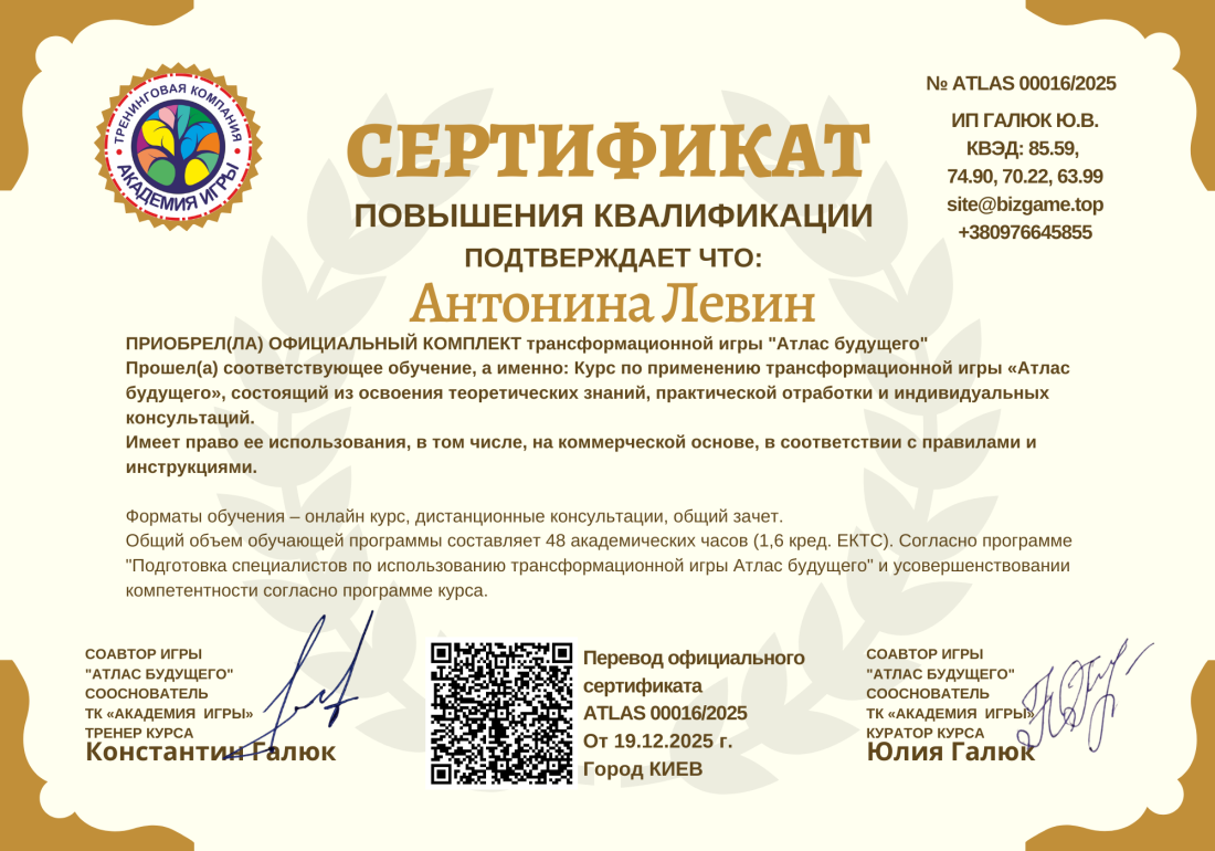 Програма підвищення кваліфікації педагогічних працівників: “Підготовка фахівців з використання трансформаційної гри "Атлас Майбутнього"