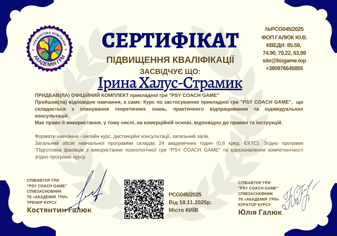 Програма підвищення кваліфікації педагогічних працівників: "Підготовка фахівців з використання прикладної гри "PSY COACH GAME""