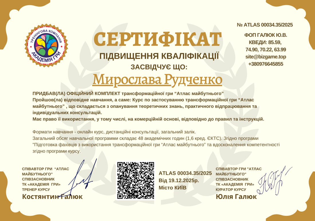 Програма підвищення кваліфікації педагогічних працівників: “Підготовка фахівців з використання трансформаційної гри "Атлас Майбутнього"
