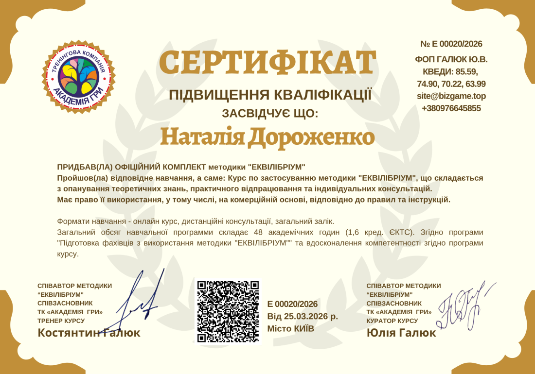 Програма підвищення кваліфікації педагогічних працівників: “Підготовка фахівців з використання методики «Еквілібріум"
