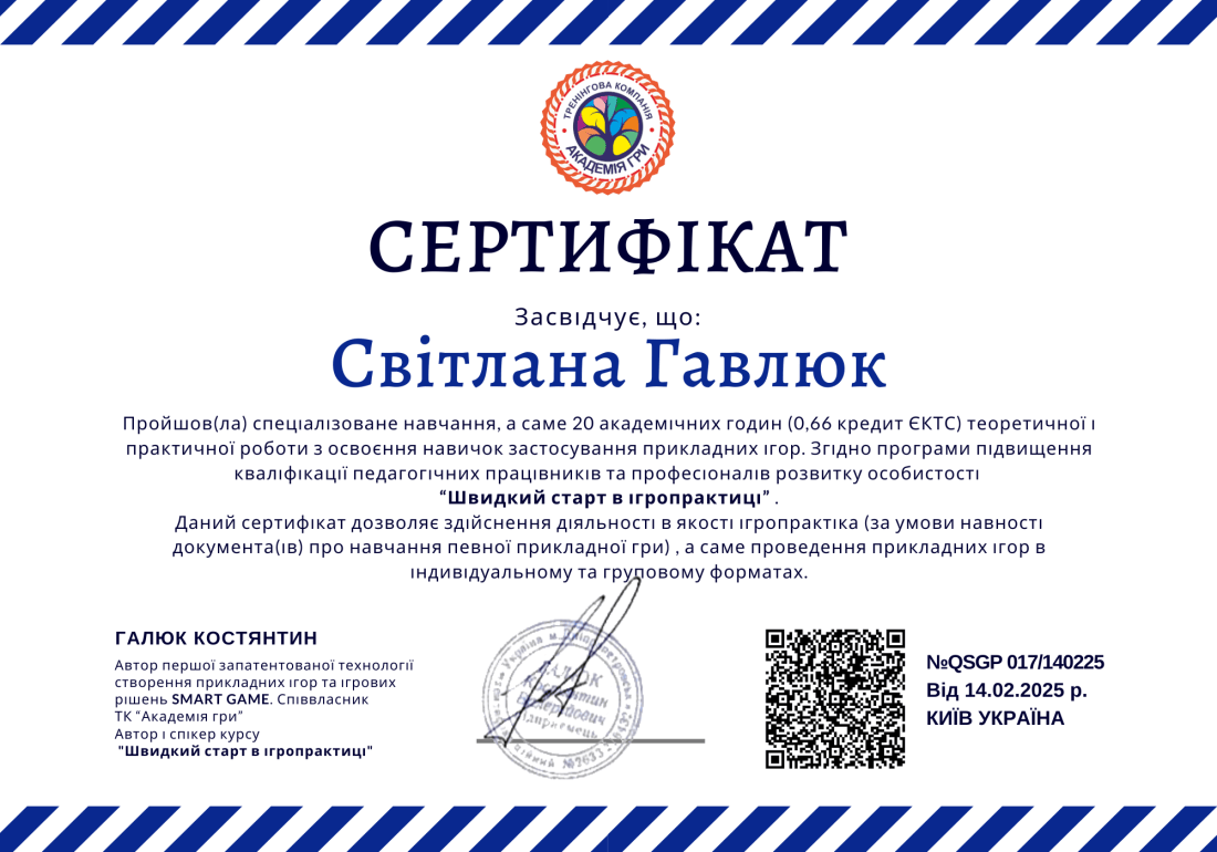 Програма підвищення кваліфікації педагогічних працівників: "Швидкий старт в Ігропрактиці"