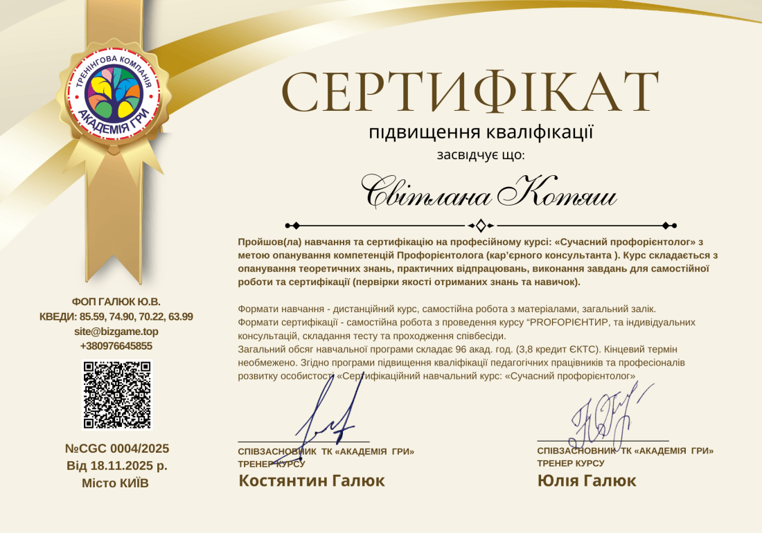 Програма підвищення кваліфікації педагогічних працівників курсу: "Сучасний Профорієнтолог"