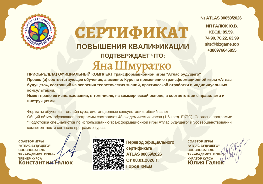 Програма підвищення кваліфікації педагогічних працівників: “Підготовка фахівців з використання трансформаційної гри "Атлас Майбутнього"