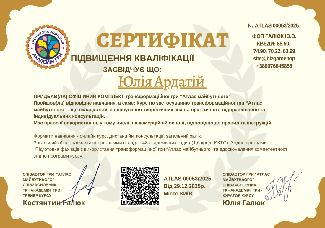 Програма підвищення кваліфікації педагогічних працівників: “Підготовка фахівців з використання трансформаційної гри "Атлас Майбутнього"