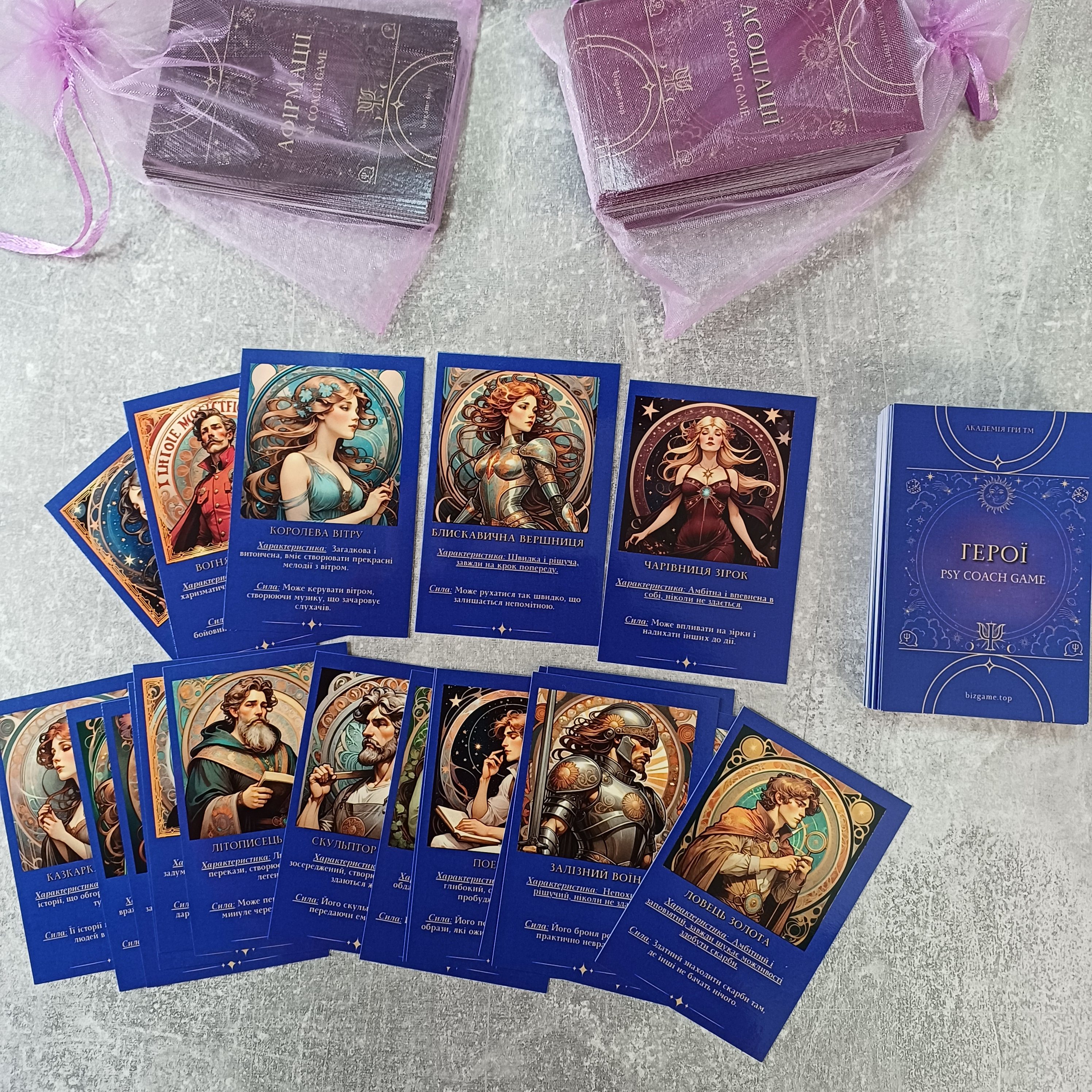 - Герои — 72 карты (герои разработаны согласно типологии Дж. Голланда).